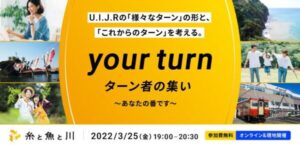 新潟県糸魚川市主催の『 糸と魚と川 Vol.04〜新潟糸魚川発 地方創生じぶんごとプロジェクト〜 』が現地(駅北広場キターレ in 糸魚川)と オンラインのハイブリッド形式にて開催されます。 第四回のテーマは、 … 続きを読む 『 糸と魚と川 Vol.04 〜「 your turn 」 様々なターンの形とこれからのターンを考える 〜 』が開催されます